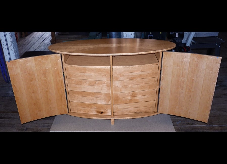 Bedroom Dresser — Tiger-stripe Maple with veneer parquetry.