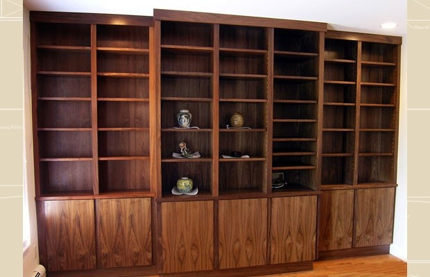 For a private residence — White Oak with hidden closets lined in felt for the dining table leaves, pocket doors, molding matching concrete ones outside the room.