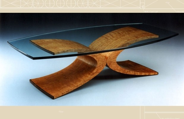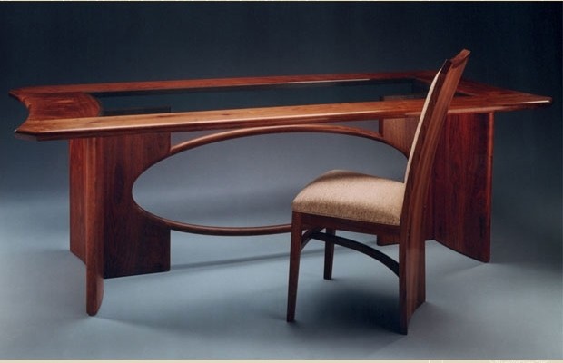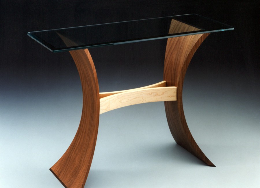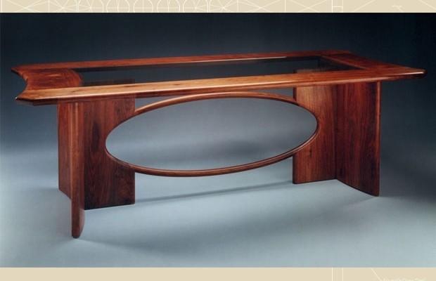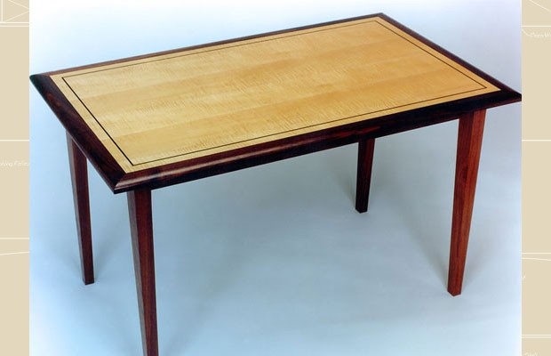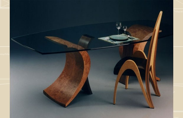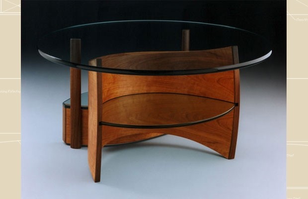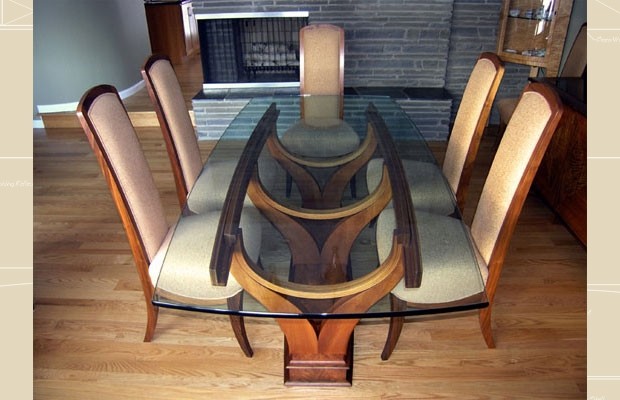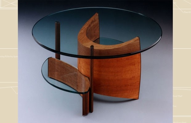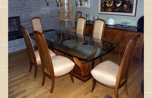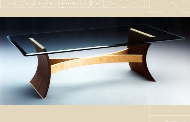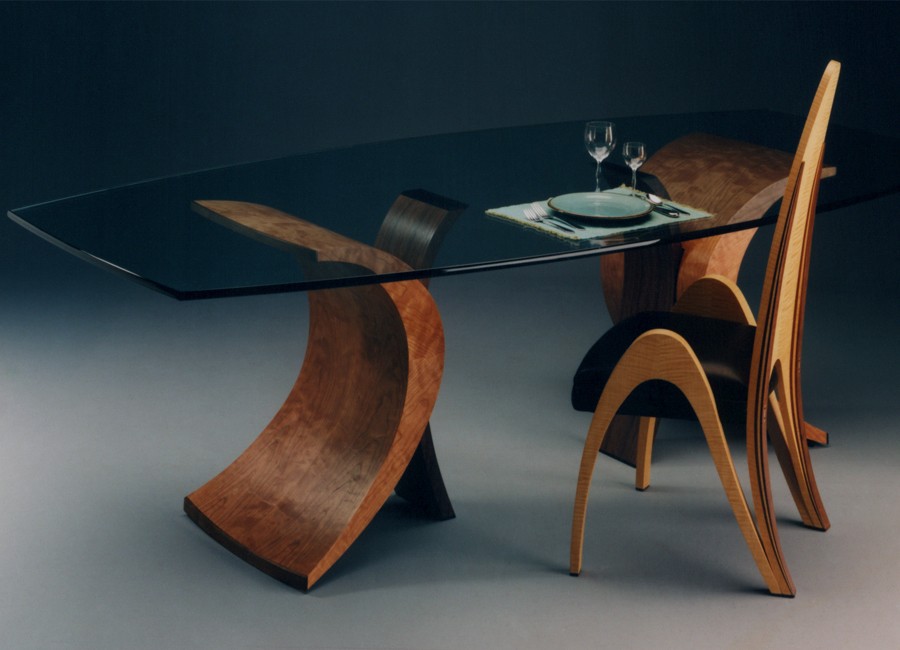 Dining Table 30 — Cherry, Walnut, Crotch Cherry with ¾" glass top, Extends 3' with glass extensions.
