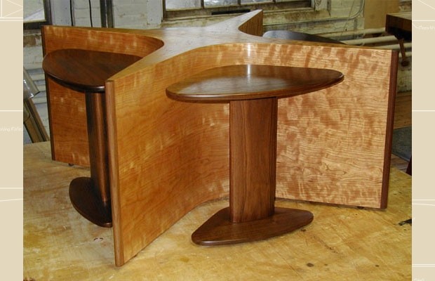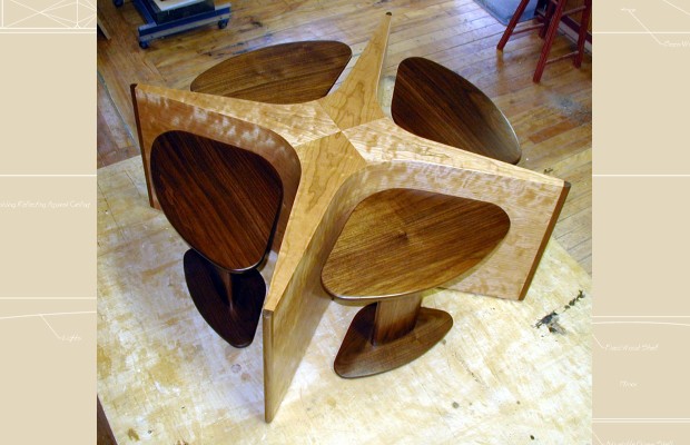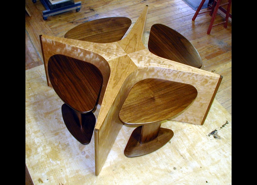 Star Coffee Table — Figured Cherry with Walnut including four separate carved Walnut Tables.